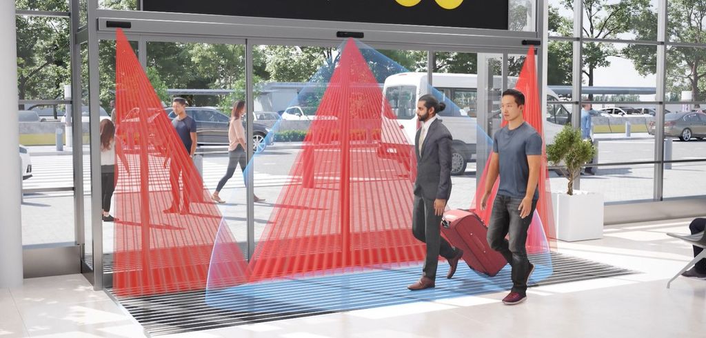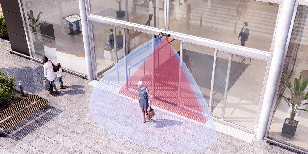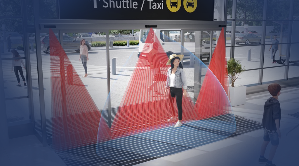 ドア・シャッターなどの起動用にマイクロ波を、利用者などの保護用に赤外線を採用し、2つの技術を1台に搭載した自動ドア(スライドドア)用ハイブリッドセンサーです。
