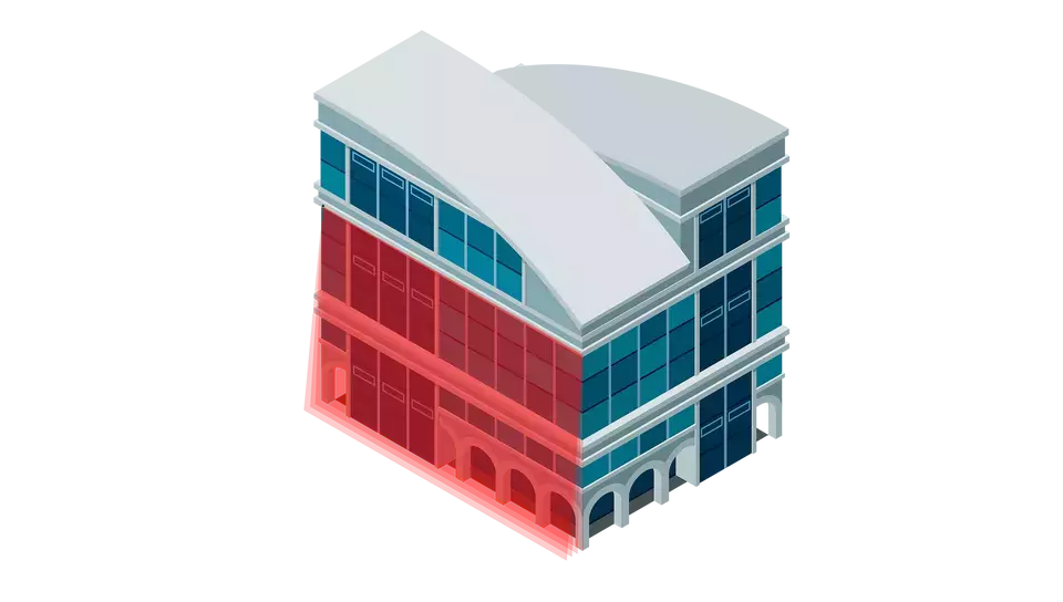 レーザスキャナーセンサーは、公共施設や民間施設の屋内外におけるエリアを監視し、不正侵入や屋上・壁・窓などへの侵入を防止します。