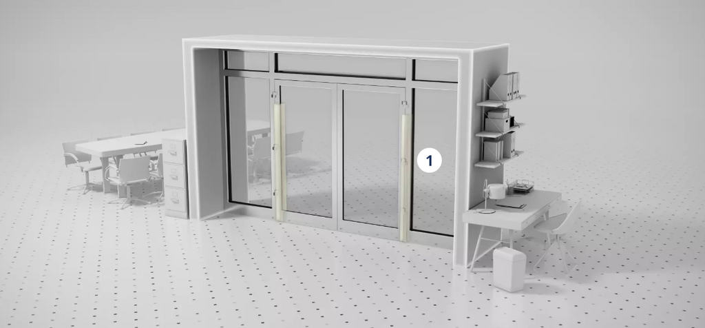 - 在门扇上方装置2-3个4SAFE传感器,以保护整个门扇区域安全。铰链区域的额外安全保护是强制性的,需为铰链区域提供额外的防夹手安全保护装置。
