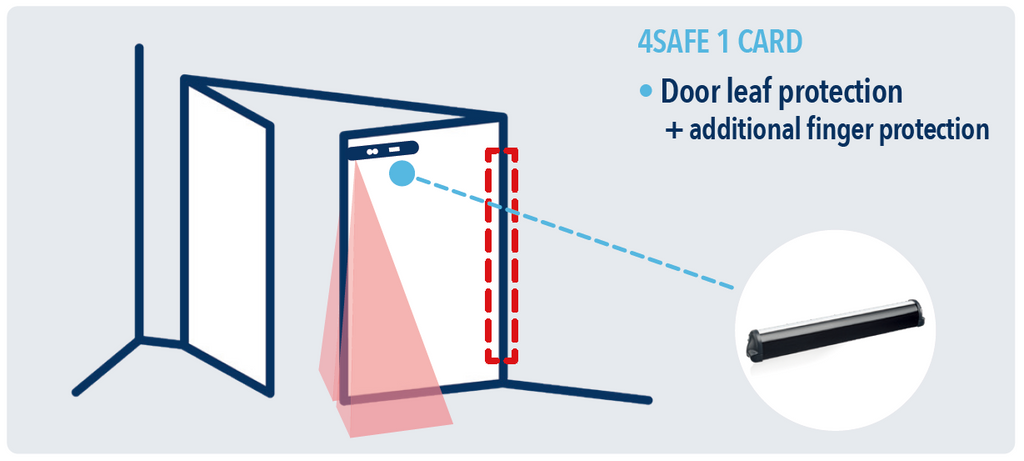 - 在门扇上方装置1个4SAFE传感器,保护门扇及门扇前沿最危险的区域。并为铰链区域提供额外的防夹手安全保护装置。