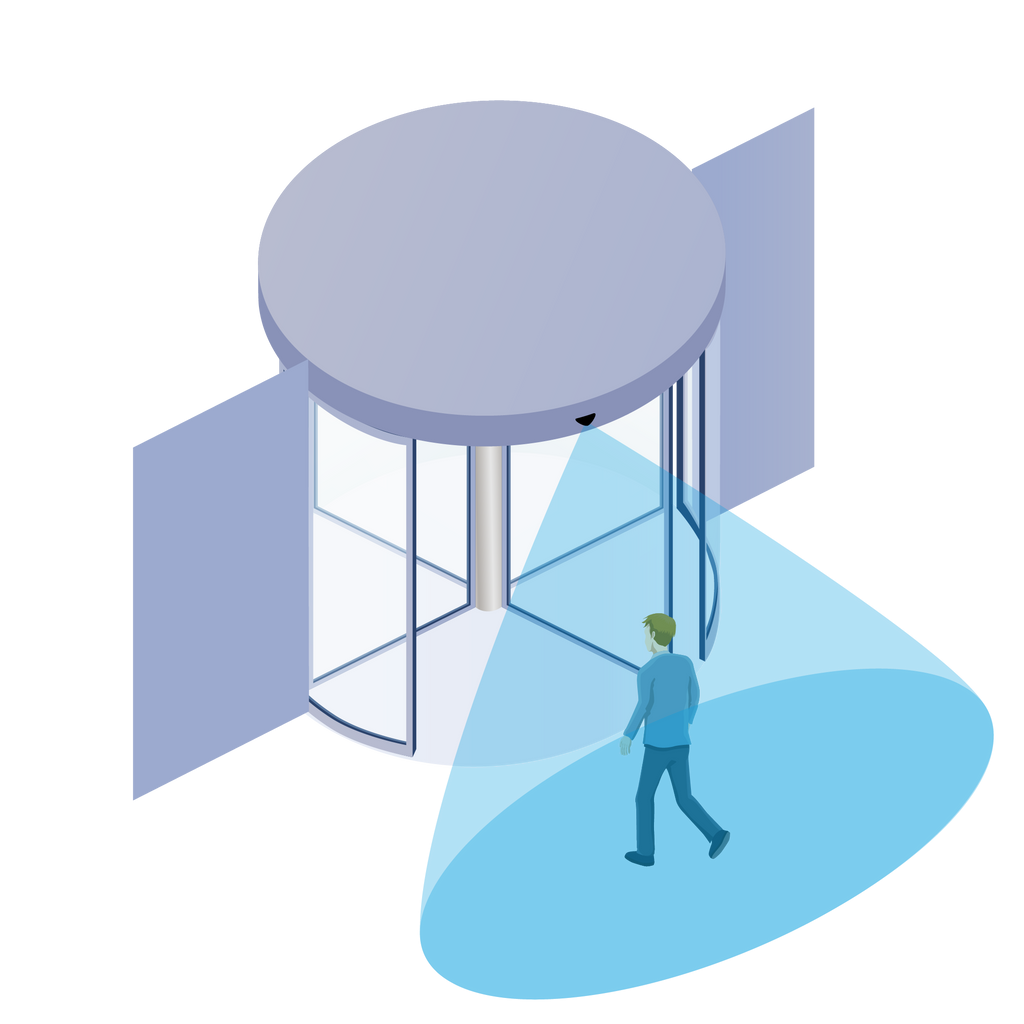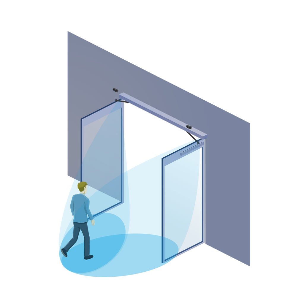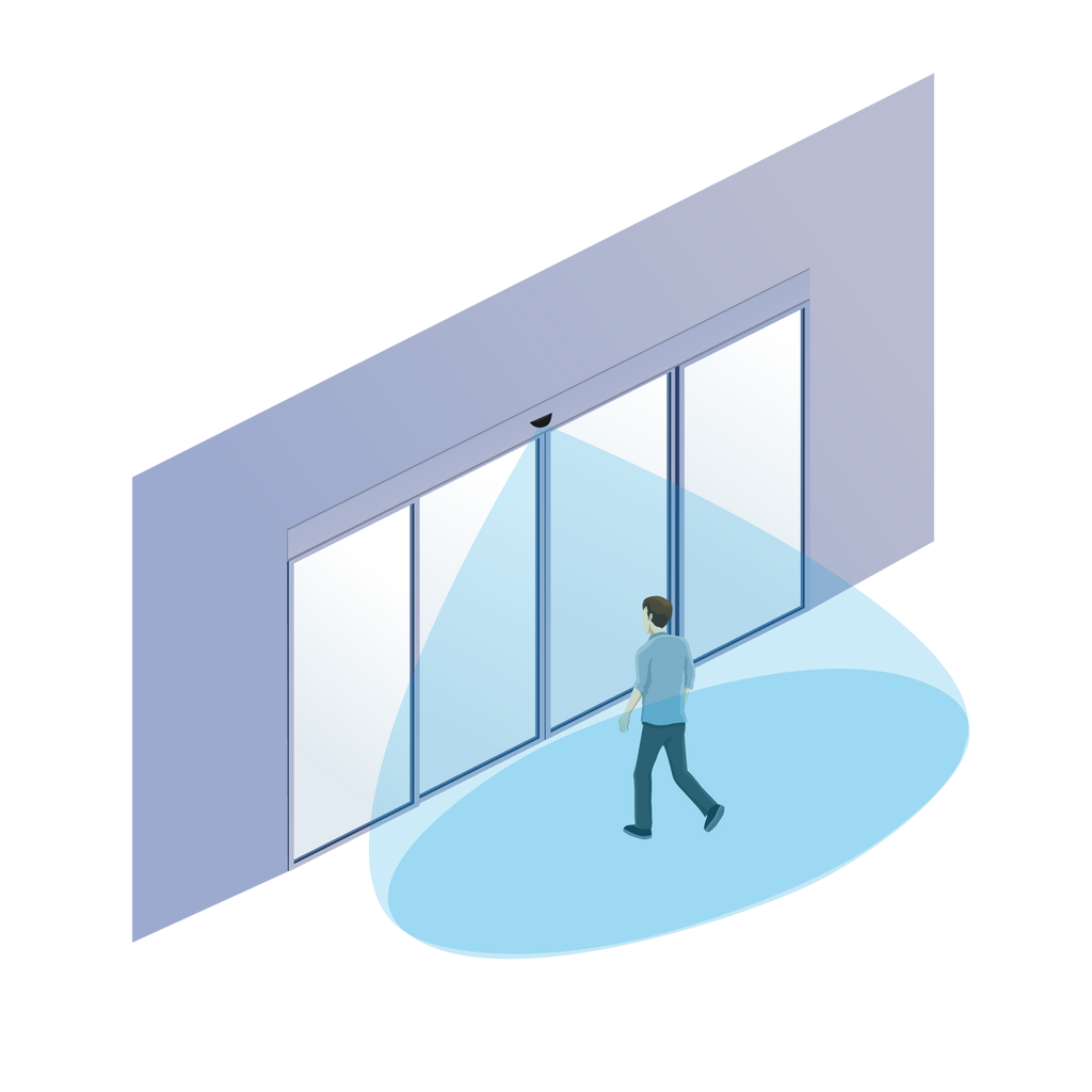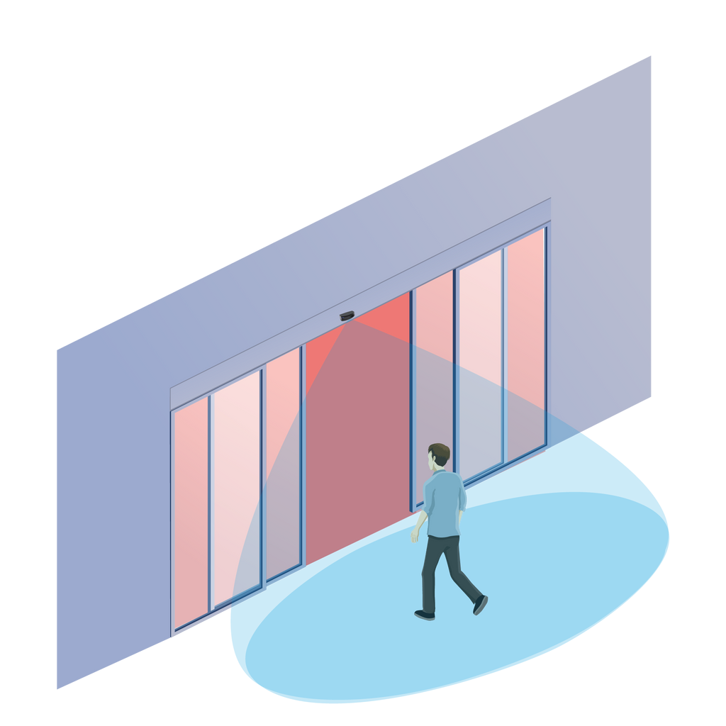 - 弥补传统开启传感器的盲区。它能精准识别静止或慢速通过者,防止门体误关闭造成撞击。