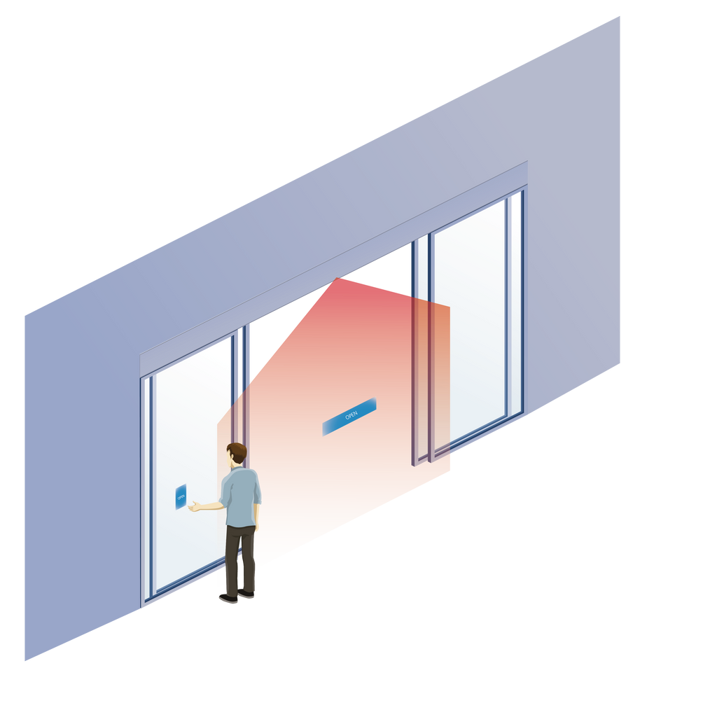 LZR®-FLATSCAN SL 是一款多功能激光传感器。用户可以根据实际使用需求,自由设定2个虚拟按钮用于门的开启,适用于各种类型的自动平移门以及医用门。
